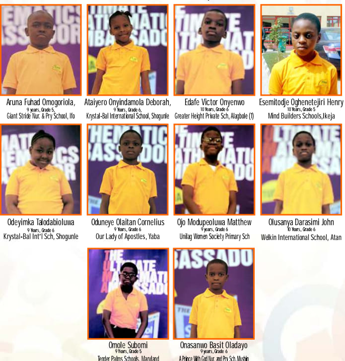 This is to inform all candidates who participated in the 8th edition of The Ultimate Mathematics Ambassador, TUMA Annual National Mathematics Competition for Primary 5&6 that the top 10 winners/finalist has finally emerged.
