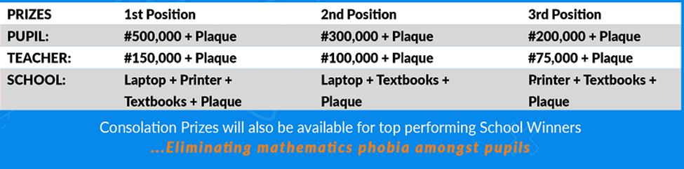 The Ultimate Mathematics Ambassador, TUMA Annual Mathematics Competition Grand Cash Prizes and Consolation Prizes for Teachers and Students.